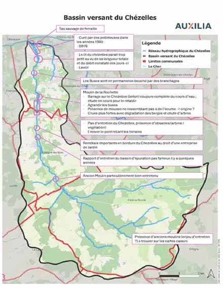 Pour compléter cet état des lieux technique sur les affluents du Cher, Auxilia a mené une enquête auprès des propriétaires d’ouvrages à la fois par des rencontres individuelles et par questionnaire. Les rencontres individuelles étaient pensées avant tout pour faire connaissance, informer sur l’étude en cours et évaluer la possibilité de poursuivre le dialogue. Le questionnaire a permis de recueillir des informations sur les ouvrages, leurs usages actuels et projetés, les pratiques d’entretien, l’attachement des propriétaires, etc.