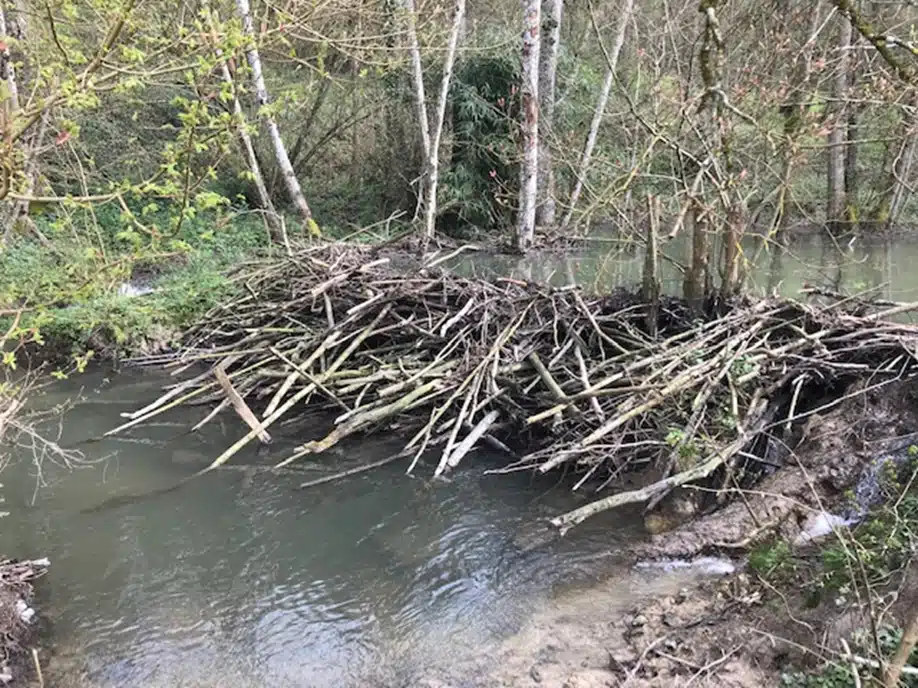 Photographie d’un barrage de castors sur un affluent du Cher, prise lors d’une rencontre avec un propriétaire.